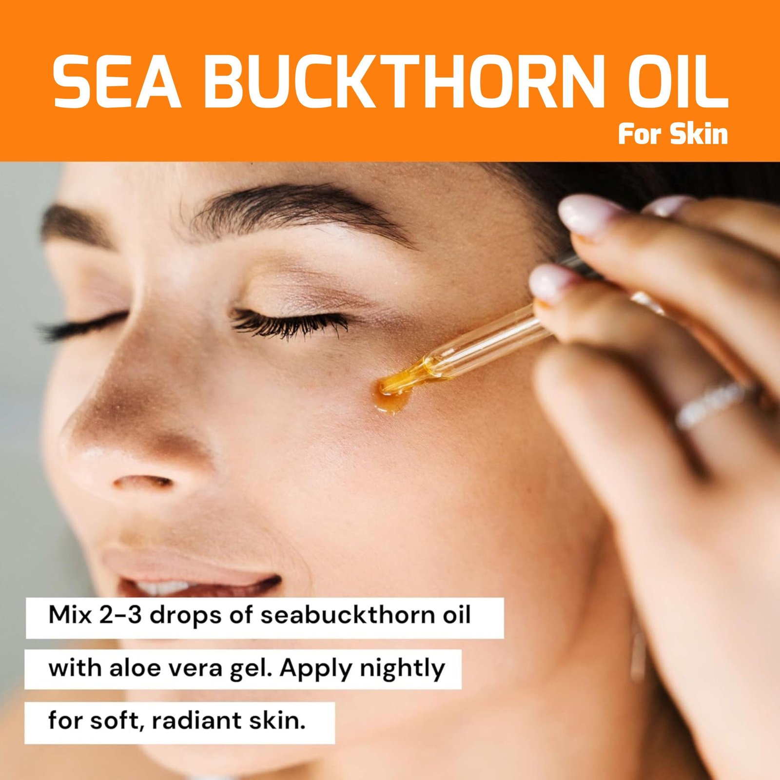 Sea Buckthorn Oil contains powerful antioxidants, vitamins A, C, E, and omega 3, 6, 7, and 9, which deeply nourish, protect, and rejuvenate skin and hair.