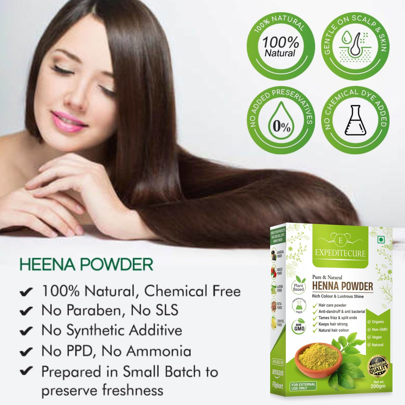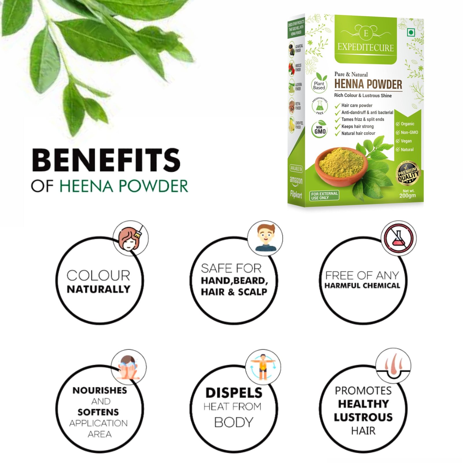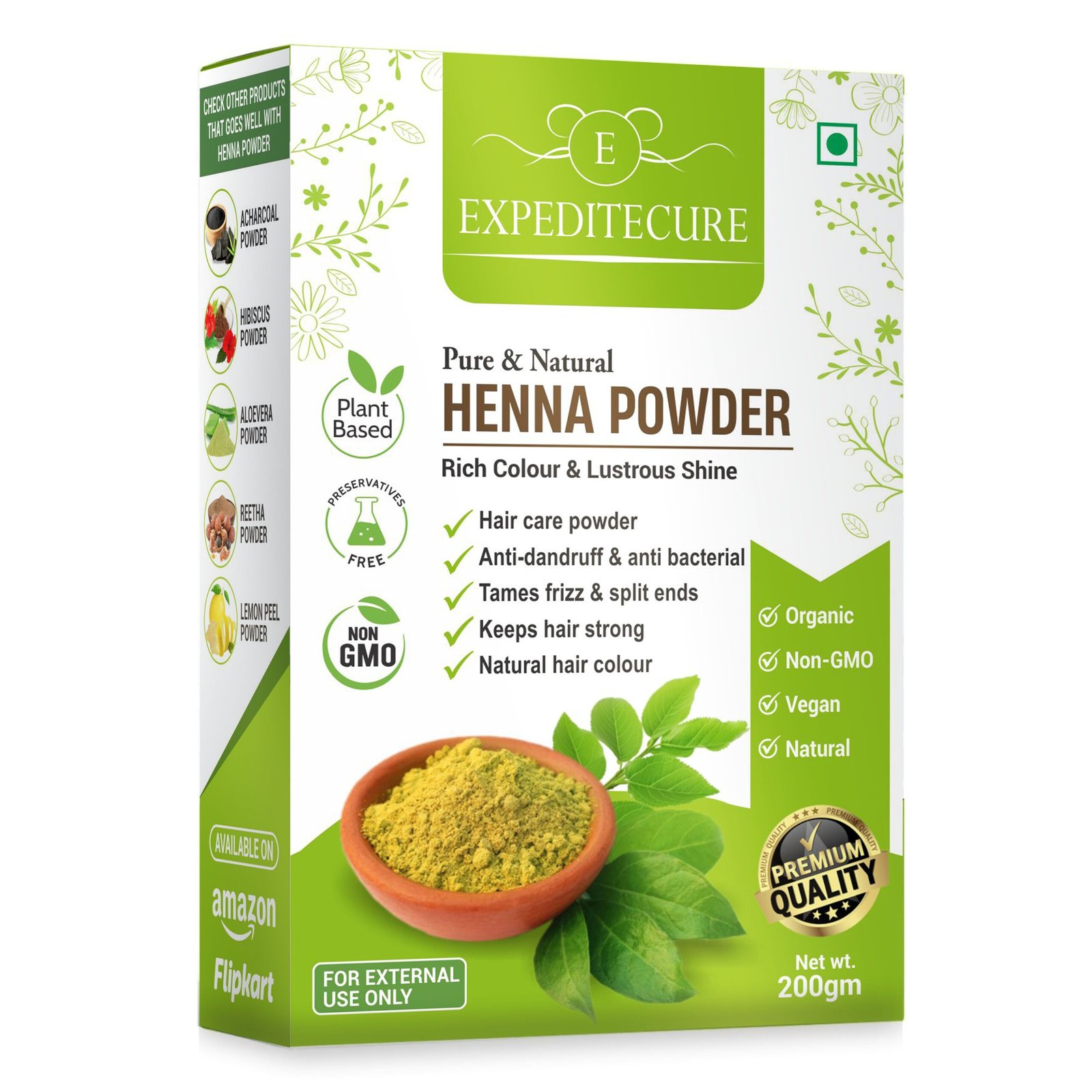 Henna Powder, made from the leaves of the Lawsonia inermis plant, is a natural and traditional herb widely used for hair coloring and conditioning. Known for its cooling properties, it naturally imparts a rich reddish-brown hue to hair without the use of harmful chemicals. Henna also strengthens hair, reduces dandruff, and promotes scalp health by balancing oil production and soothing irritation. Regular use can add shine, thickness, and smoothness to the hair. Apart from hair care, henna is also used for creating intricate mehndi designs on hands and feet, especially during festive occasions. Being 100% natural and chemical-free, henna is a safe and effective alternative for those seeking herbal beauty solutions for both hair and skin applications.